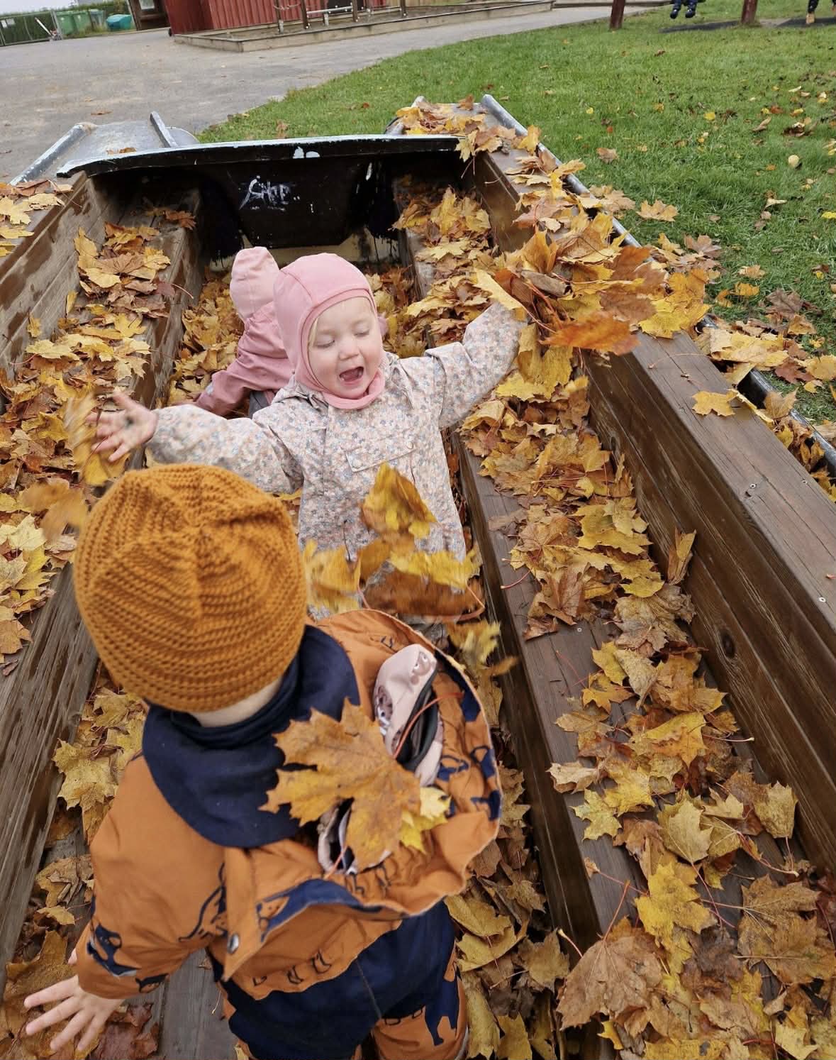 I praksis jobber vi hver eneste dag med det fysiske miljøet for barna. Vi ønsker å være ute så mye som mulig, og prøver å være ute minimum én gang om dagen.